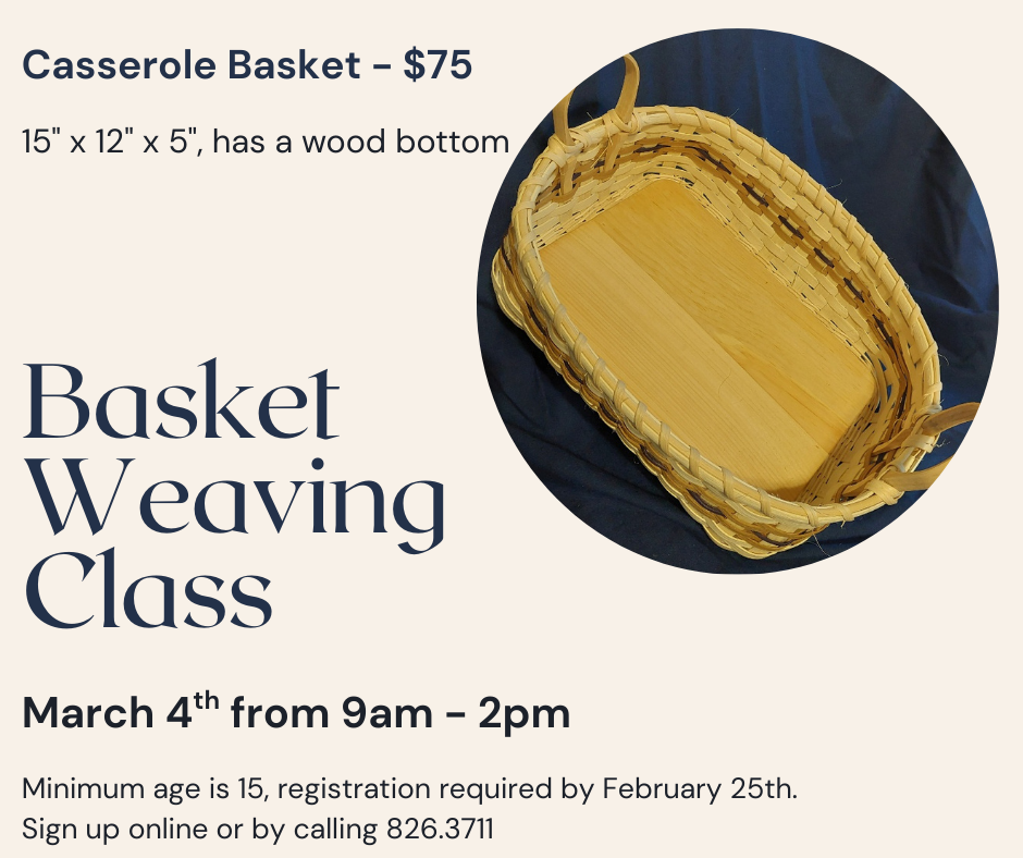 Casserole Basket, $75, 15″ x 12″ x 5″, has a wood bottom.