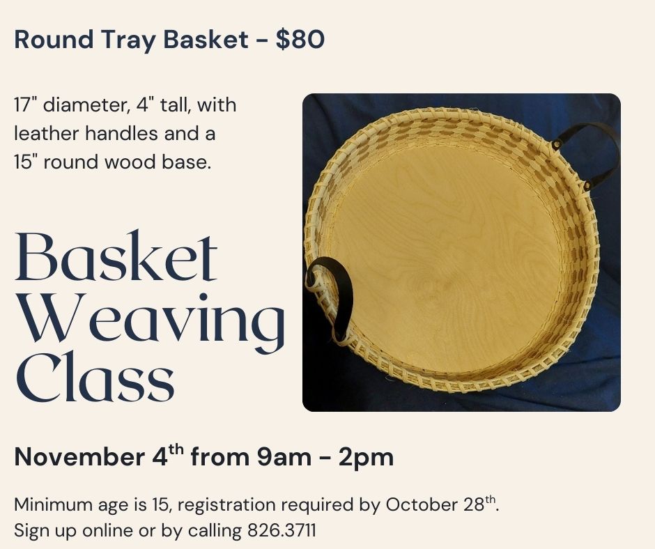 Learn how to weave a round tray basket, taught by Laura Klaus. All sizes are approximate and are measured to the top of the basket, not to the top of the handle. There is a minimum age of 15. Registration closes 1 week prior to class so that we have time to prepare the materials. ... Read more